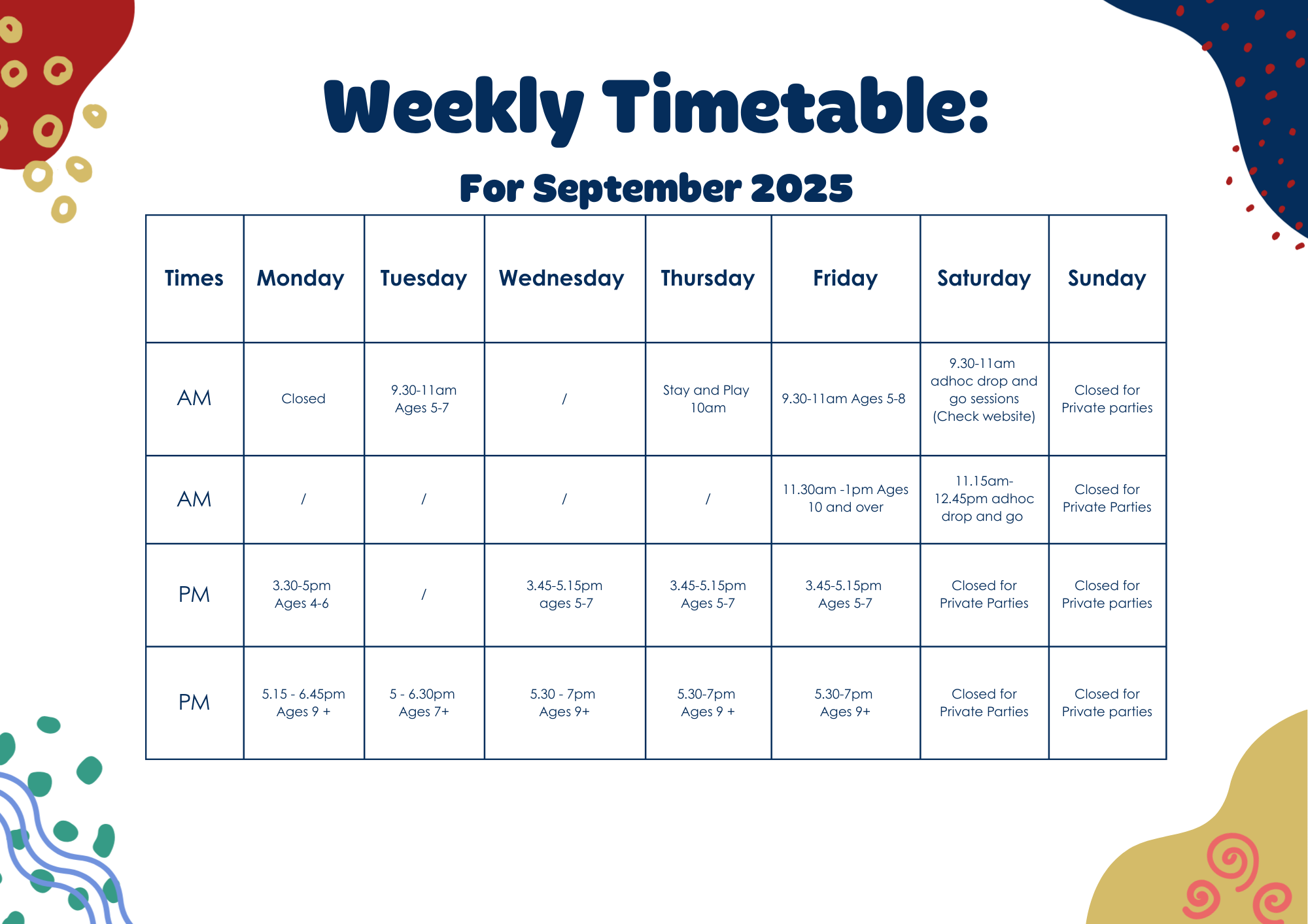 See our timetable and fill out the form at the bottom of the page to secure a FREE trial